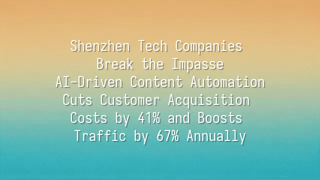 Shenzhen Tech Companies Break the Impasse: AI-Driven Content Automation Cuts Customer Acquisition Costs by 41% and Boosts Traffic by 67% Annually