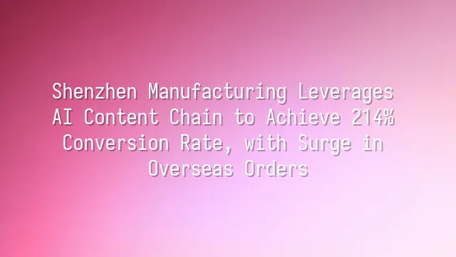 Shenzhen Manufacturing Leverages AI Content Chain to Achieve 214% Conversion Rate, with Surge in Overseas Orders