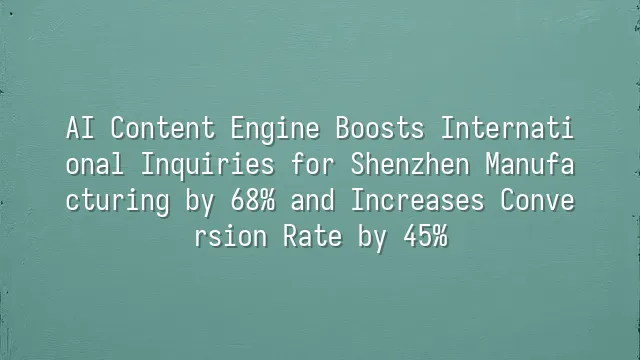 AI Content Engine Boosts International Inquiries for Shenzhen Manufacturing by 68% and Increases Conversion Rate by 45%
