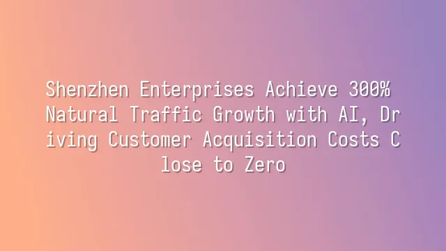 Shenzhen Enterprises Achieve 300% Natural Traffic Growth with AI, Driving Customer Acquisition Costs Close to Zero