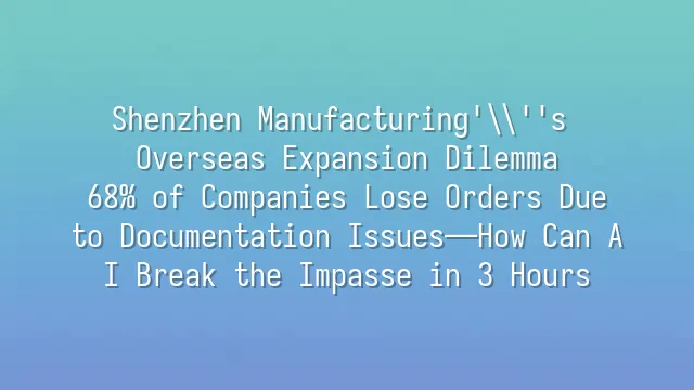 Shenzhen Manufacturing's Overseas Expansion Dilemma: 68% of Companies Lose Orders Due to Documentation Issues—How Can AI Break the Impasse in 3 Hours?