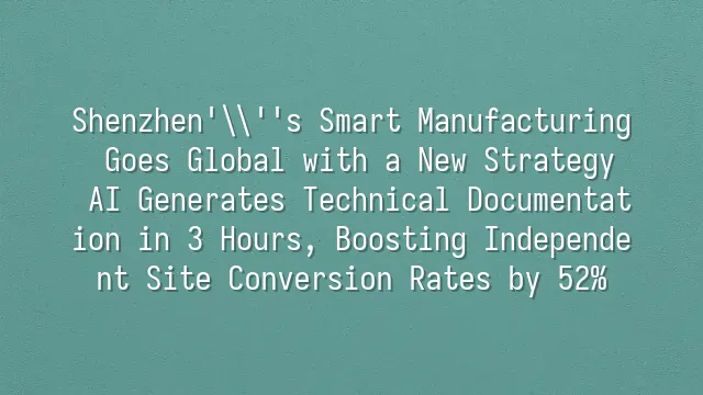 Shenzhen's Smart Manufacturing Goes Global with a New Strategy: AI Generates Technical Documentation in 3 Hours, Boosting Independent Site Conversion Rates by 52%