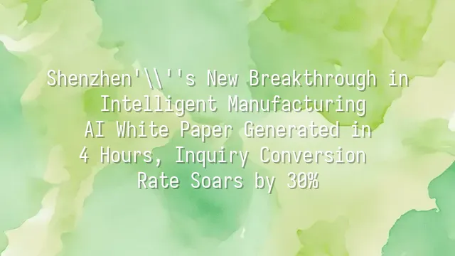 Shenzhen's New Breakthrough in Intelligent Manufacturing: AI White Paper Generated in 4 Hours, Inquiry Conversion Rate Soars by 30%
