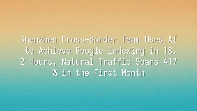 Shenzhen Cross-Border Team Uses AI to Achieve Google Indexing in 18.2 Hours, Natural Traffic Soars 417% in the First Month