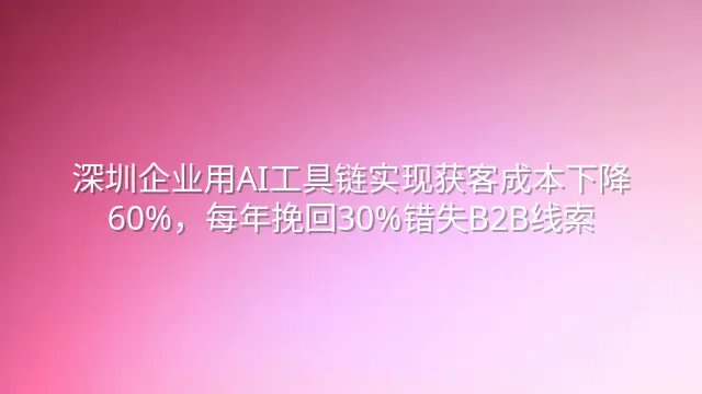 深圳企业用AI工具链实现获客成本下降60%,每年挽回30%错失B2B线索