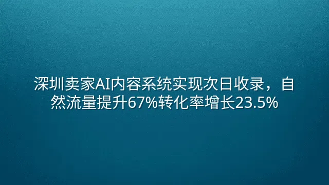 深圳卖家AI内容系统实现次日收录,自然流量提升67%转化率增长23.5%