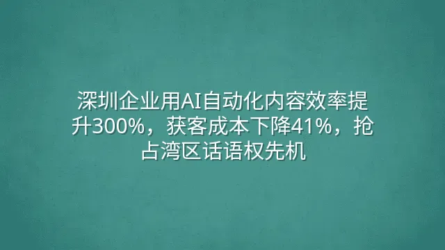 深圳企业用AI自动化内容效率提升300%,获客成本下降41%,抢占湾区话语权先机