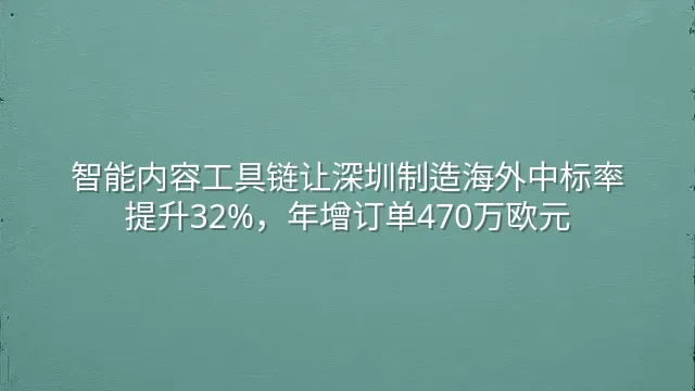智能内容工具链让深圳制造海外中标率提升32%,年增订单470万欧元