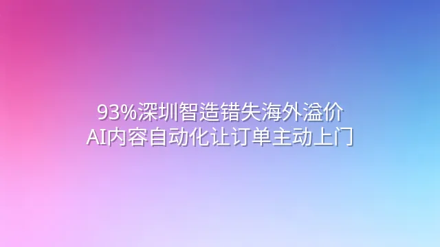 93%深圳智造错失海外溢价?AI内容自动化让订单主动上门