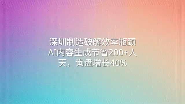 深圳制造破解效率瓶颈:AI内容生成节省200+人天,询盘增长40%