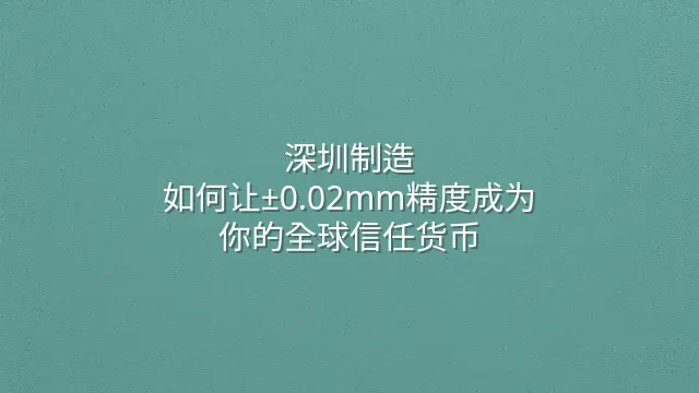 深圳制造:如何让±0.02mm精度成为你的全球信任货币?