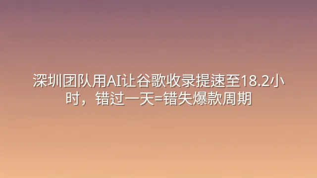 深圳团队用AI让谷歌收录提速至18.2小时,错过一天=错失爆款周期