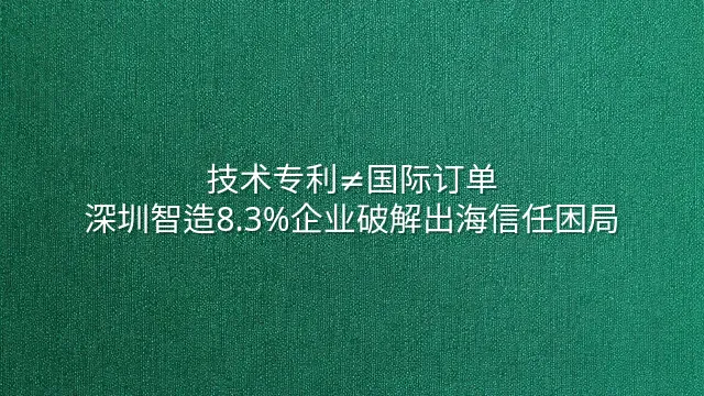 技术专利≠国际订单?深圳智造8.3%企业破解出海信任困局