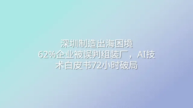 深圳制造出海困境:62%企业被误判组装厂,AI技术白皮书72小时破局