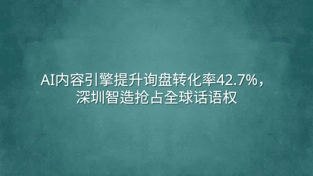AI内容引擎提升询盘转化率42.7%,深圳智造抢占全球话语权