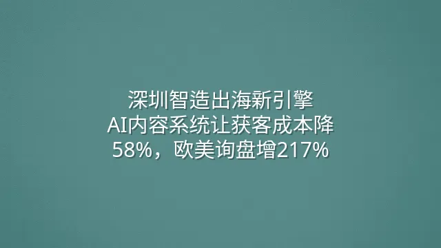 深圳智造出海新引擎:AI内容系统让获客成本降58%,欧美询盘增217%
