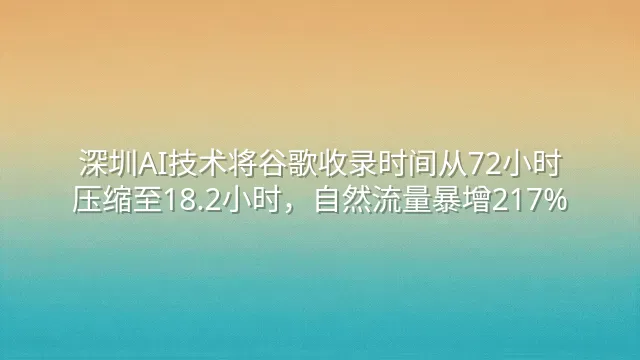 深圳AI技术将谷歌收录时间从72小时压缩至18.2小时,自然流量暴增217%