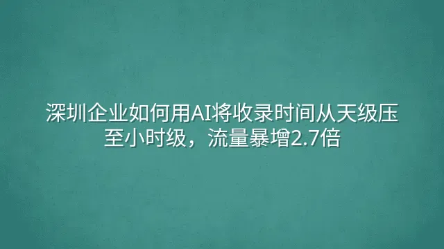 深圳企业如何用AI将收录时间从天级压至小时级,流量暴增2.7倍?