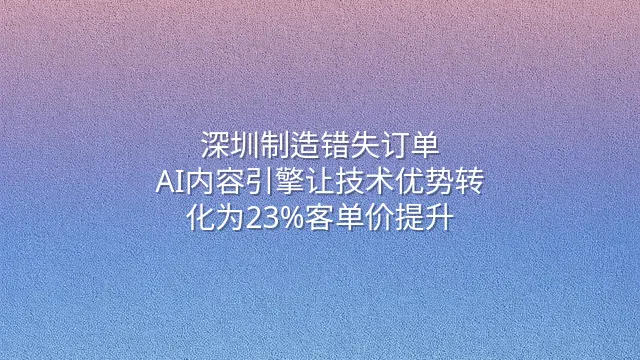 深圳制造错失订单?AI内容引擎让技术优势转化为23%客单价提升