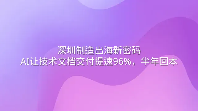 深圳制造出海新密码:AI让技术文档交付提速96%,半年回本